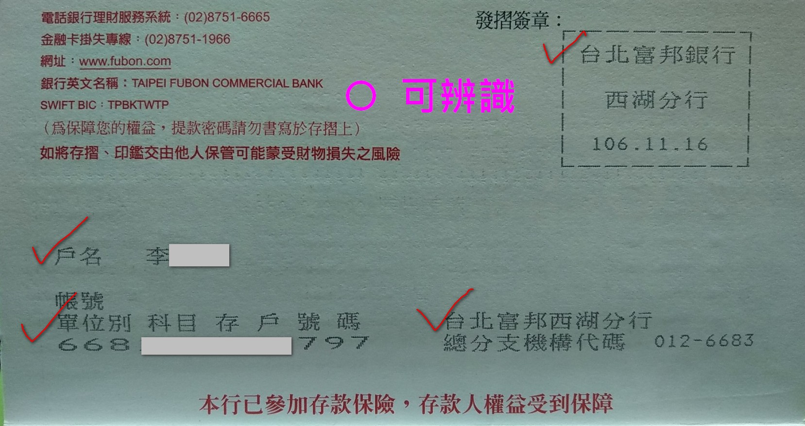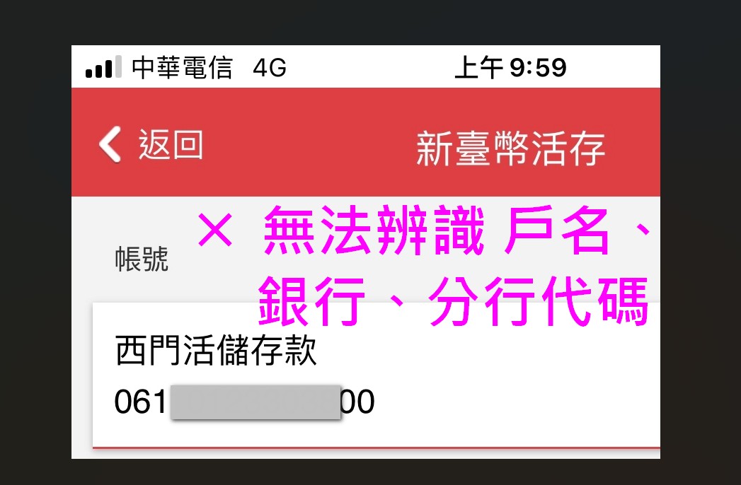 若您的照片未能呈現[銀行][戶名][帳號][分行資訊]等訊息, 承辦人員會致電與您再確認,為加速退款動作,請務必提供含有上述資訊的圖片佐證。 |